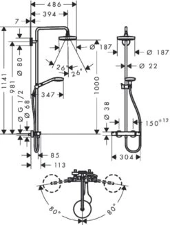 Hansgrohe Croma Select S – Brausegarnitur Showerpipe 280 Mit Thermostat, Schwarz Matt 26890670