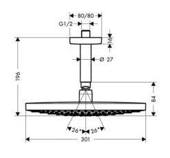 Hansgrohe Raindance Select S – Kopfbrause 300, Ausladung 100 Mm, 2 Strahlen, Verchromt 27337000