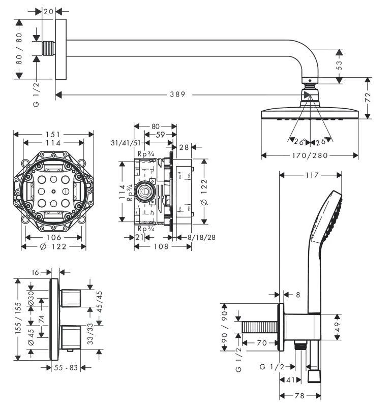 - geeignet für alle Dusch-, Wannen- und obere Thermostatsets zur Unterputzinstallation