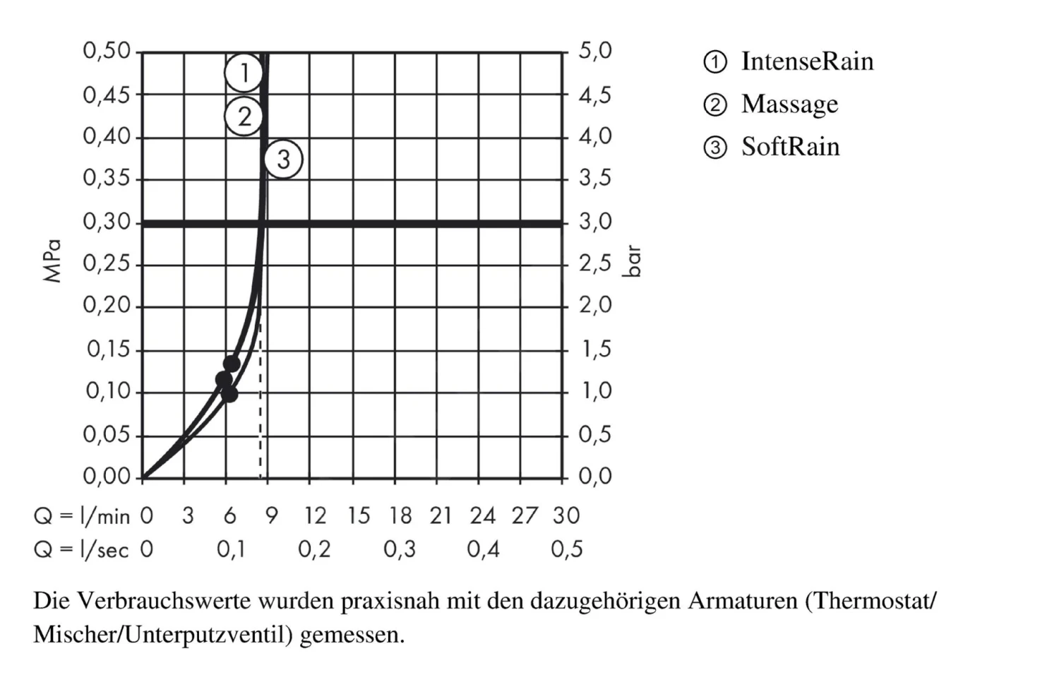 - maximale Durchflussmenge bei 3 bar: 9 l/min