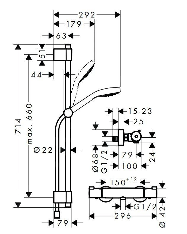 - Anschluss: Etagen G 1/2, Stichmaß 150 mm