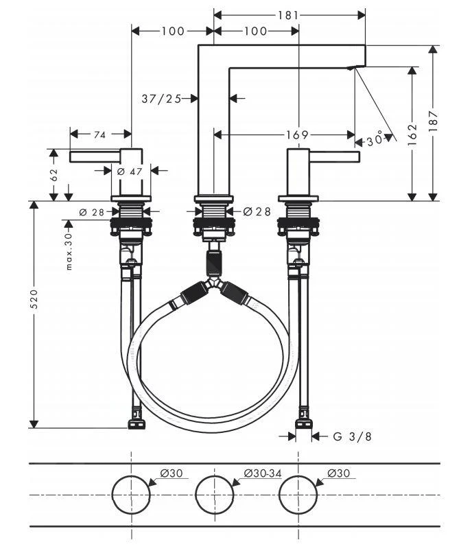 3-Loch Waschtischarmatur Finoris 160