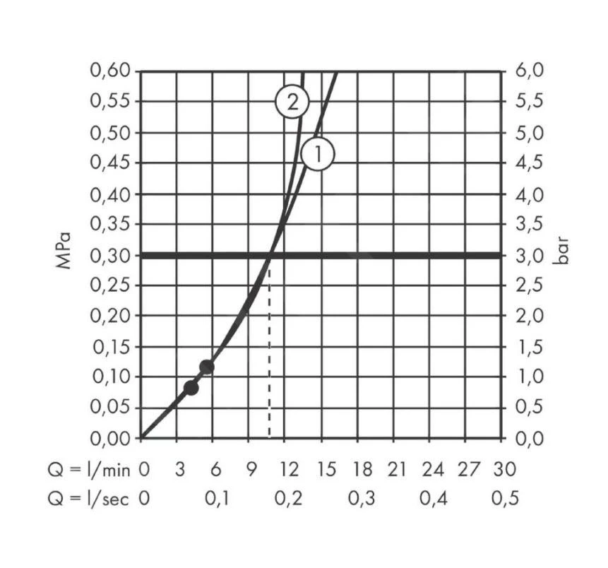 - maximaler Durchfluss bei 0,3 MPa: 11,5 l/Min