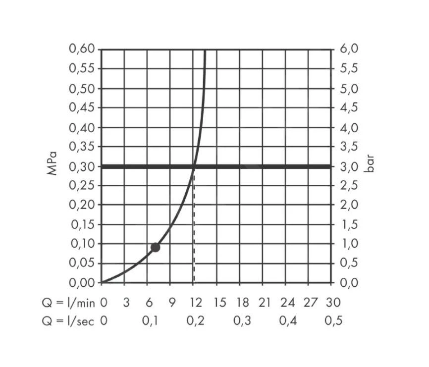 - min. Durchflussdruck: 0,1 MPa