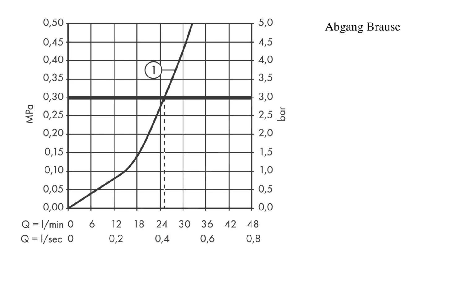 - Durchfluss für Handbrause bei 3 bar: 25 l/min
