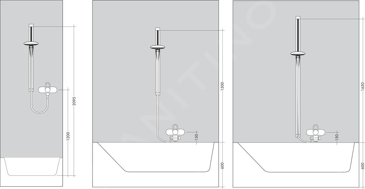 - Besteht aus: Brausestange, Brauseschlauch, Schieber