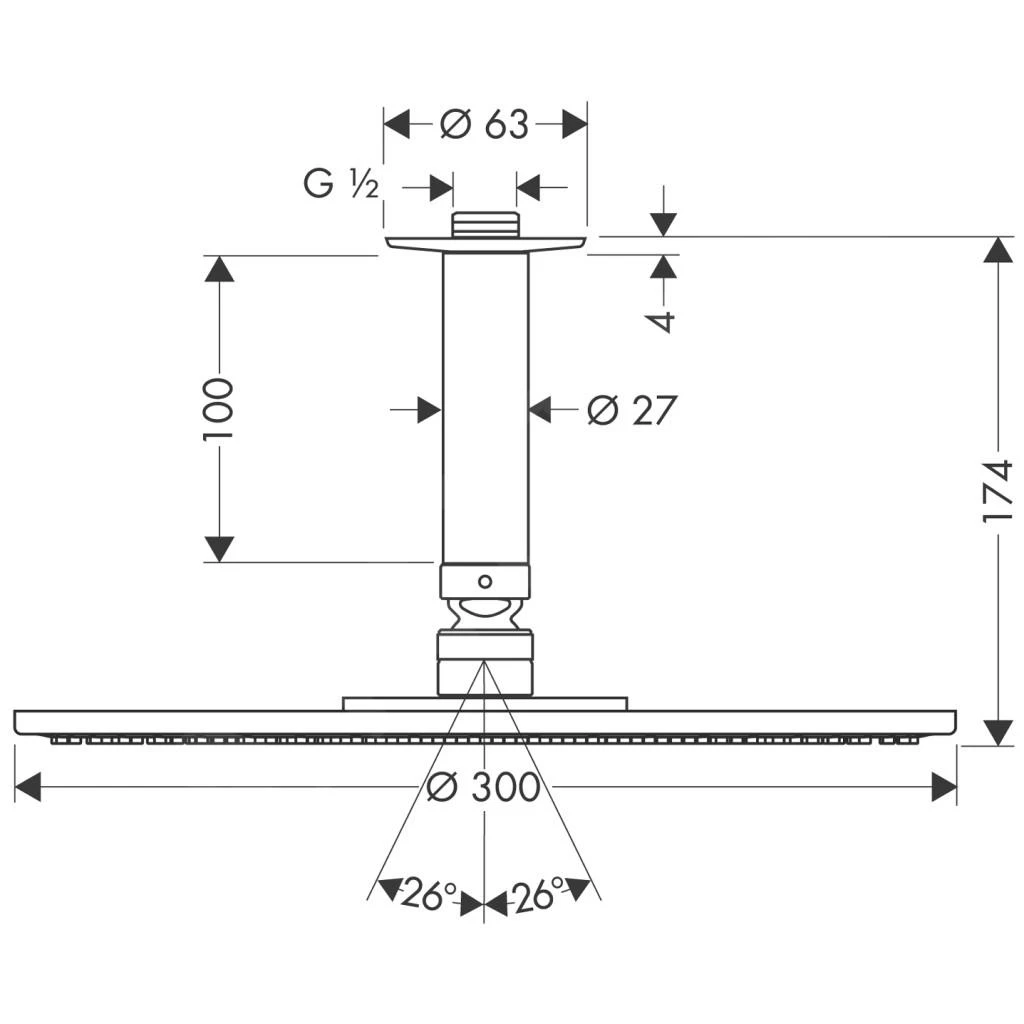 - Besteht aus: Kopfbrause, Deckenanschluss