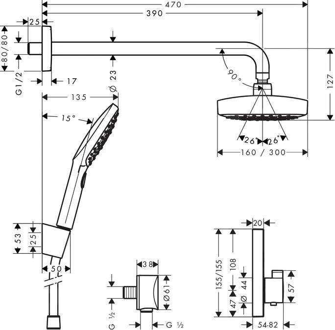 Hansgrohe Clubmaster – Kopfbrause 3jet Mit Duscharm, Verchromt 27475000