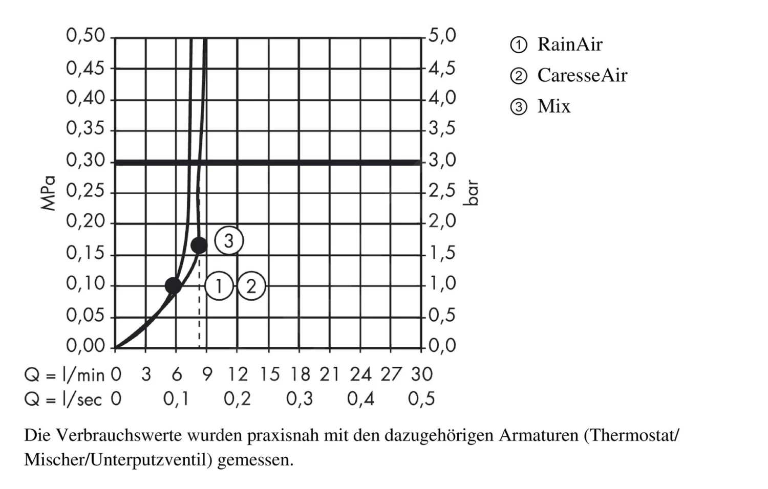 - maximale Durchflussmenge bei 3 bar: 9 l/min