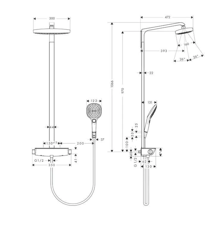 - Besteht aus: Kopfbrause, Handbrause, Brausethermostat, Brauseschlauch, Brausehalter