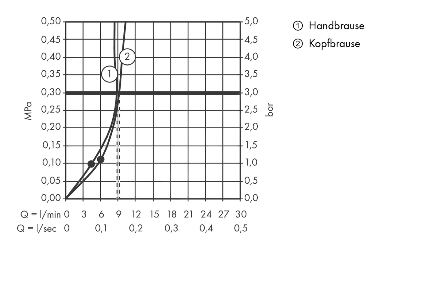 - maximale Durchflussmenge bei 3 bar: 9 l/min