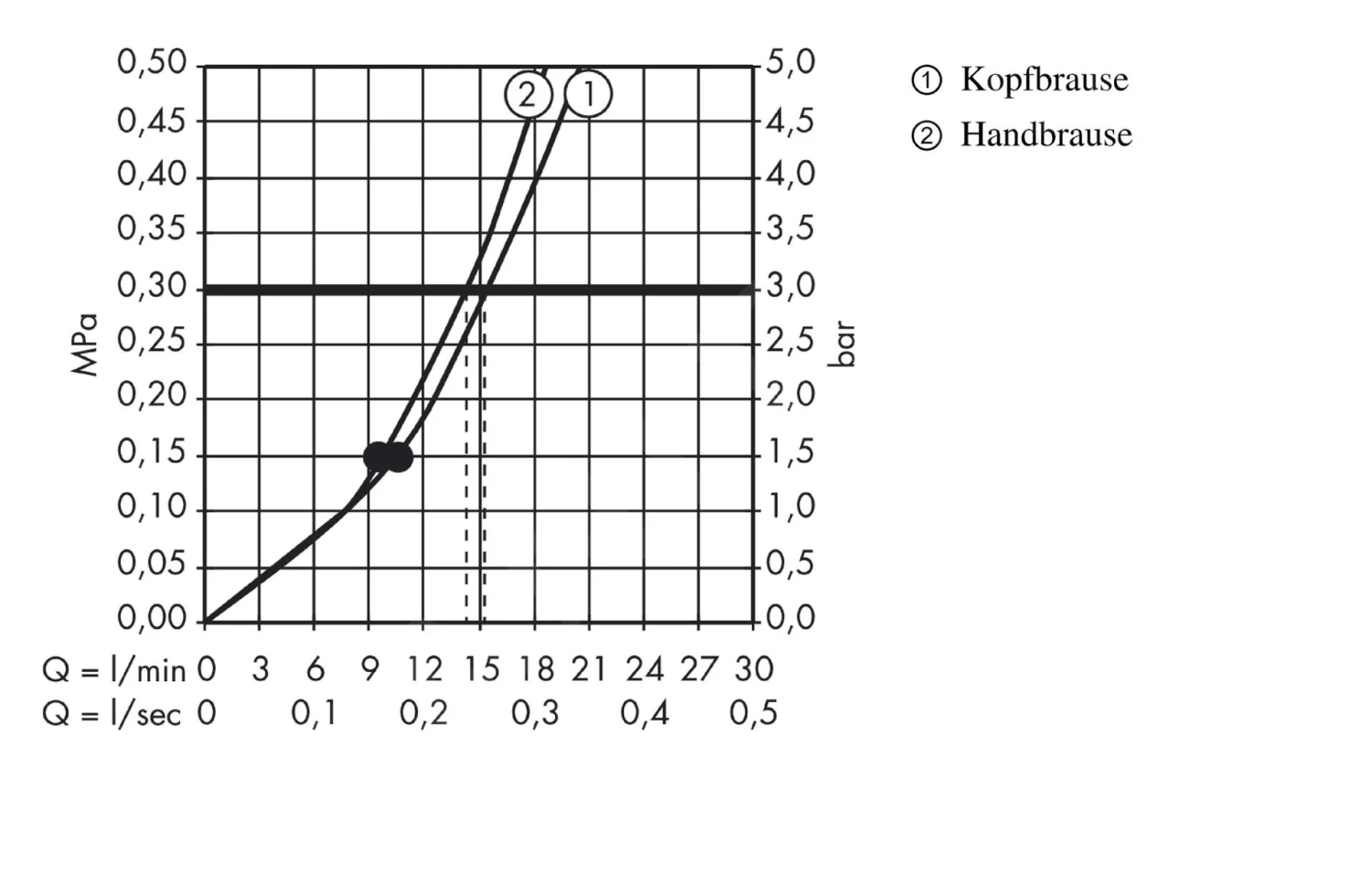 - maximale Durchflussmenge bei 3 bar: 15 l/min