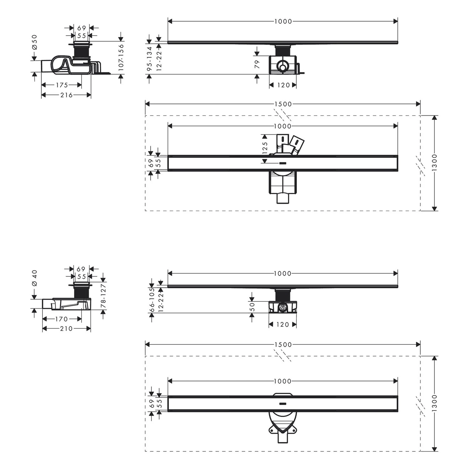 hansgrohe RainDrain Allround Komplettset Duschrinne 100 cm für Standard-/flache Installation
