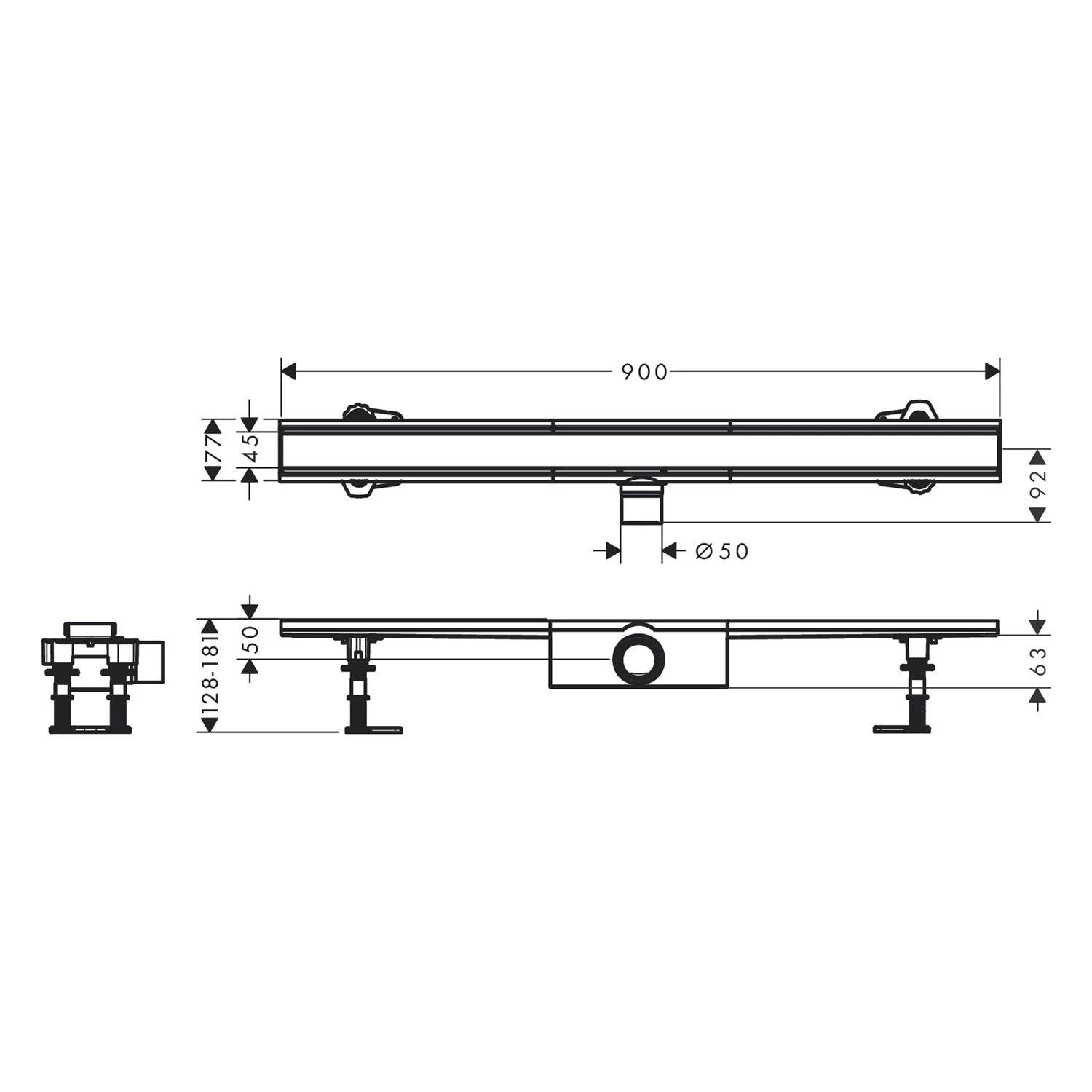 hansgrohe RainDrain Compact Komplettset Duschrinne 90 cm für Standardinstallation