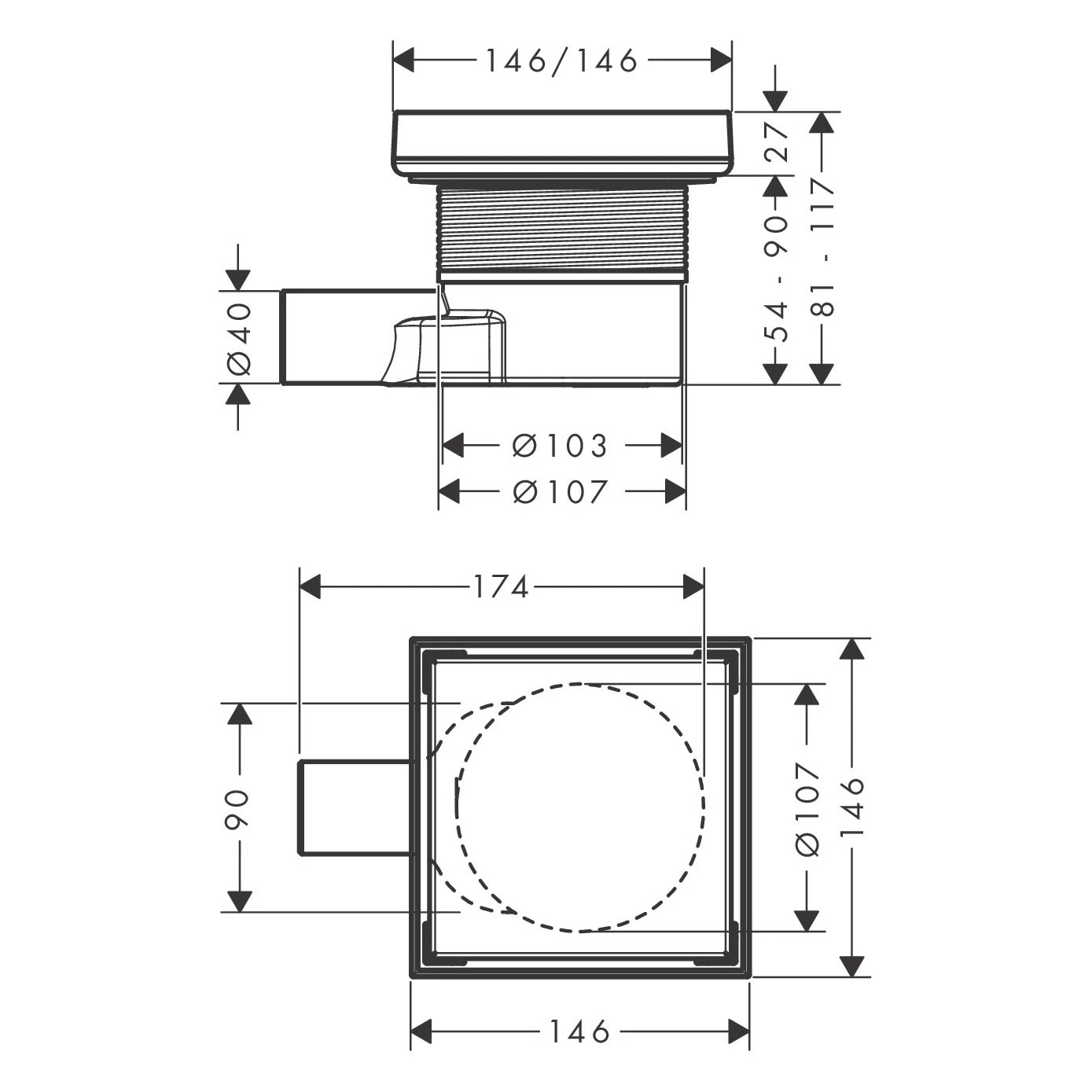 - Standard-Installation für Sperrwasserhöhe 50 mm (DN40) Installationstiefe: 54 mm