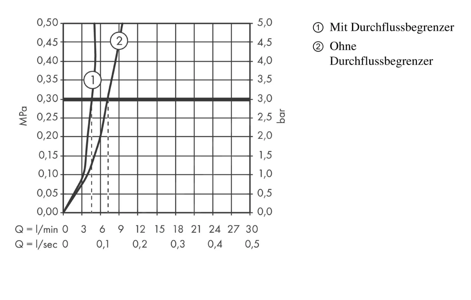 - Durchflussmenge bei 3 bar: 5 l/min