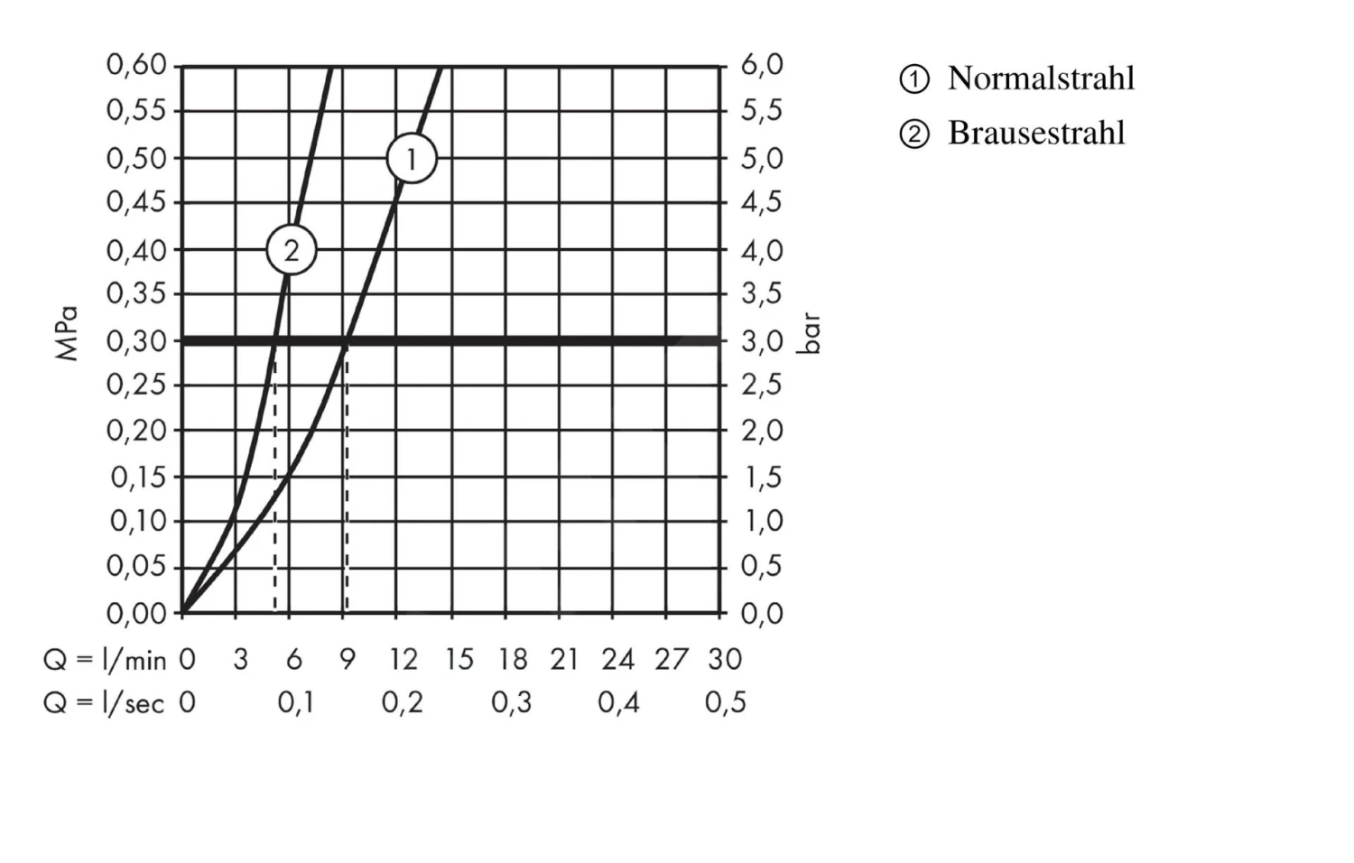 - maximale Durchflussmenge bei 3 bar: 8 l/min