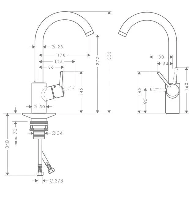 Hansgrohe M54 – Spültischmischer Talis 220, Geräteabsperrventil, Edellstahloptik 72805800
