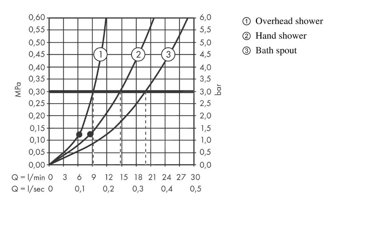 - maximaler Durchfluss bei 0,3 MPa: 15,2 l/ Min