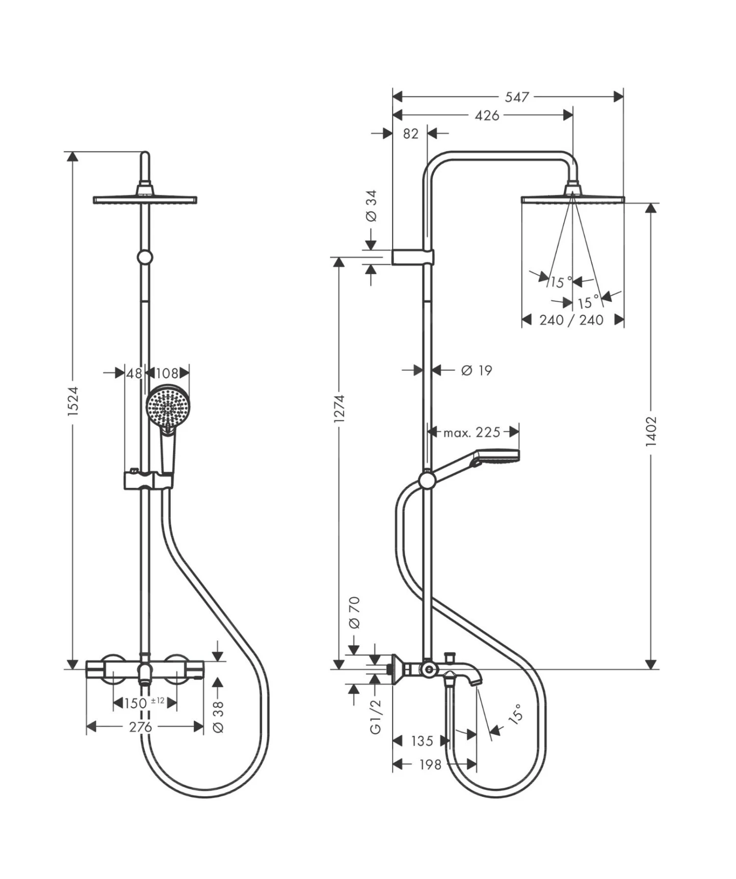 Wandhängende Brausegarnitur Showerpipe 240 enthält: