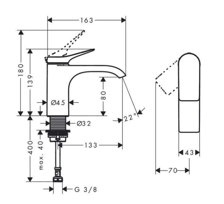 - Auslauflänge: 133 mm