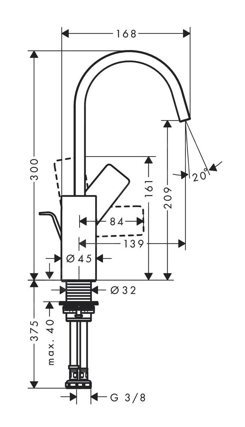 Waschtischarmatur für die Standmontage Vivenis 210 mit drehbarem Auslauf