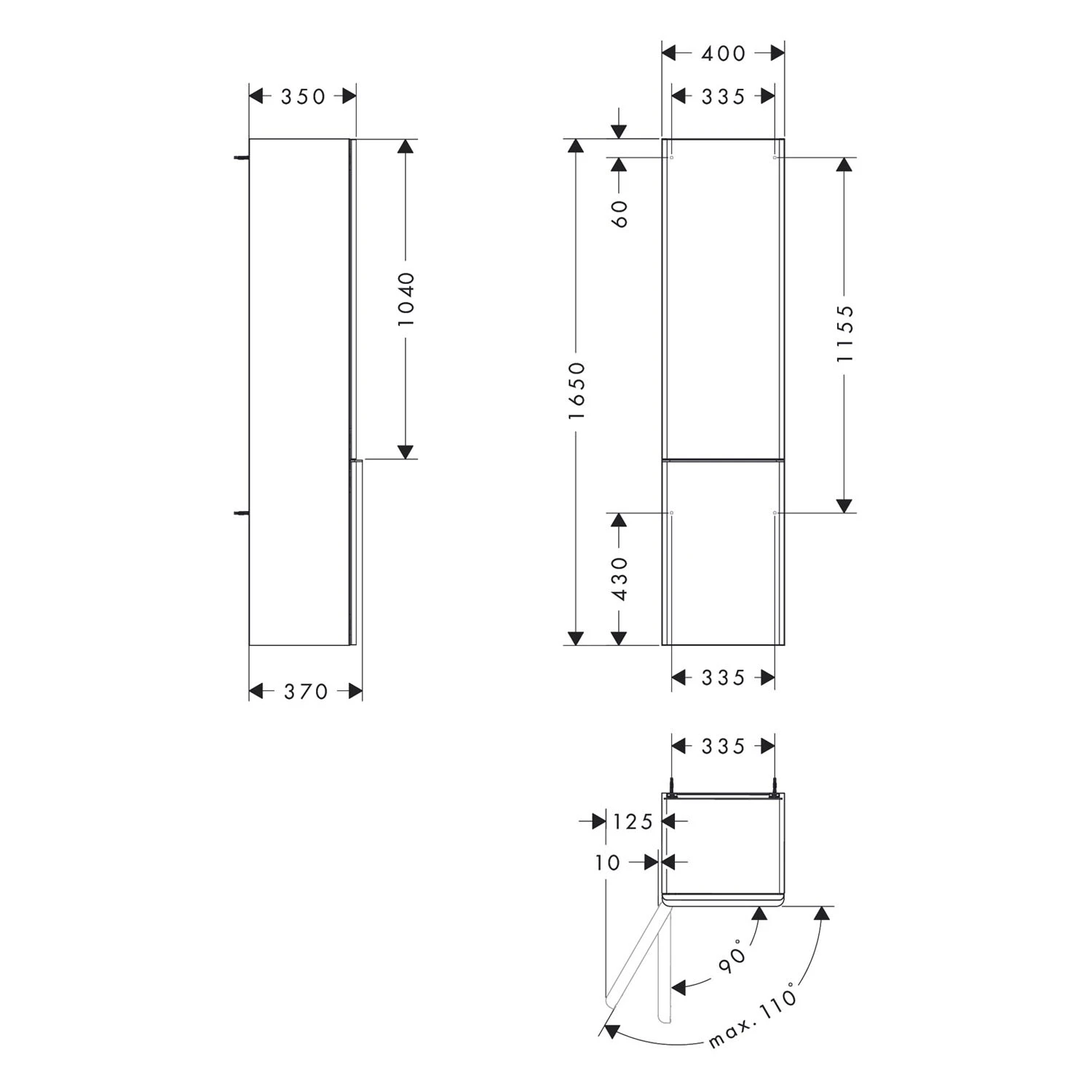 hansgrohe Xelu Q Hochschrank 40 x 165 cm, 2 Türen mit Anschlag links, Griff chrom