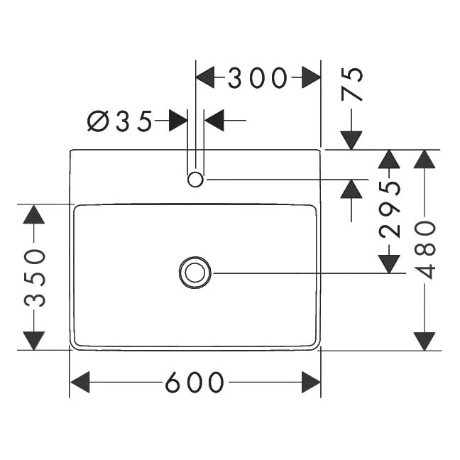 hansgrohe Xelu Q Waschbecken 60 x 48 cm ungeschliffen, mit 1 Hahnloch