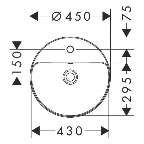 hansgrohe Xuniva S Aufsatzwaschtisch rund Ø 45 cm, mit 1 Hahnloch und Überlauf, mit SmartClean