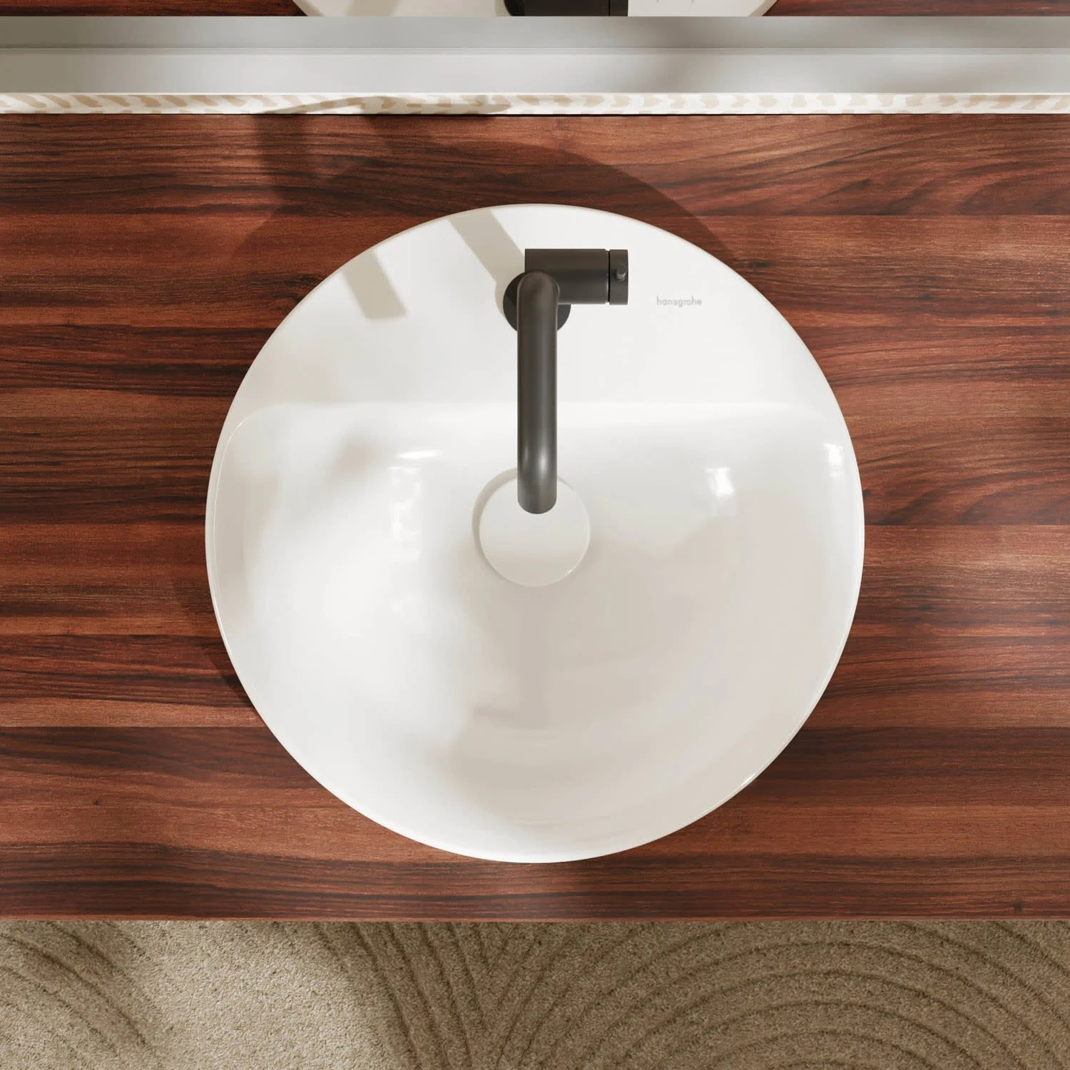 hansgrohe Xuniva S Einbauwaschtisch rund Ø 45 cm, mit 1 Hahnloch und Überlauf, mit SmartClean