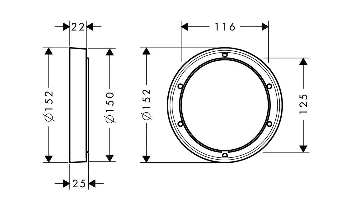 - Geeignet für alle Badewannen- und Duschfertigsets Ø 150 mm